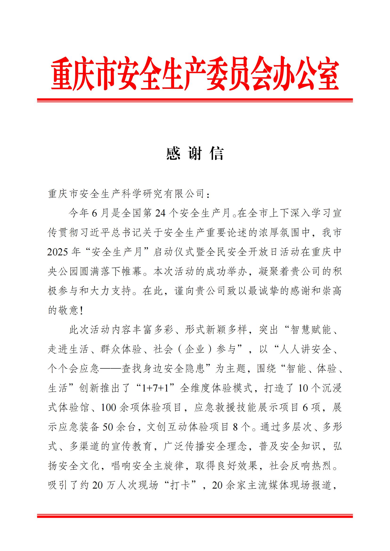 公司以專業(yè)力量助力重慶市“安全生產月”活動